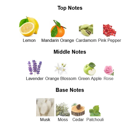 • Top Notes: Citrus (Bergamot, Lemon), Green Notes