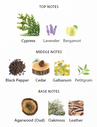- Base Notes: Vetiver, Cedarwood, Musk, Amber