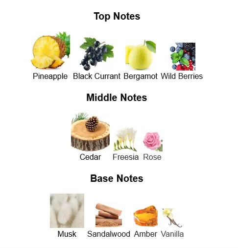 • Top Notes: Bergamot, Lemon, Blackcurrant