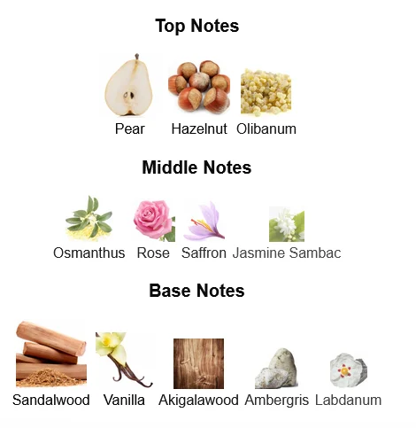 - Base Notes: Cedarwood, Sandalwood, Amber, Benzoin, Patchouli