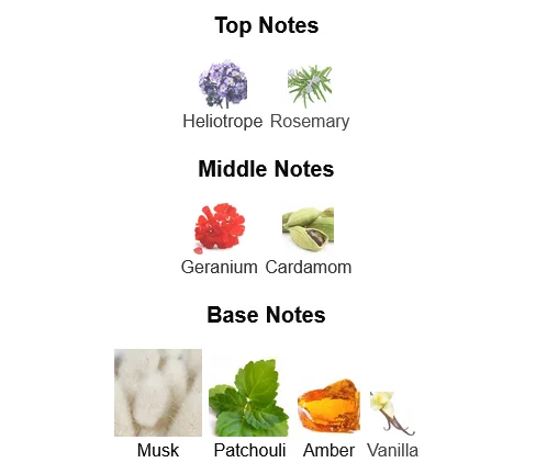 • Base Notes: Amber, Sandalwood, Musk