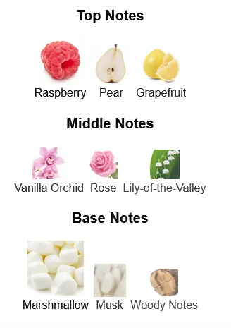 • Middle (Heart) Notes: Jasmine, Orchid, Plumeria