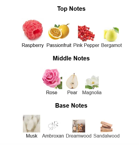 - Top Notes: Pear, Pink Pepper, and Orange Blossom