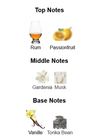- Base Notes: Amber, Tonka bean, Vanilla, Musk