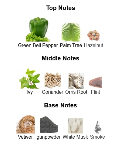 - Top Notes: Green notes, ozonic accords, aromatic herbs