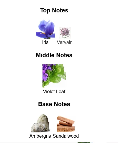 - Middle (Heart) Notes: Violet Leaf, Green Pastoral Notes, Florals