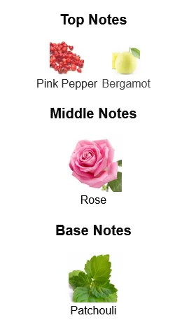 • Middle (Heart) Notes: May Rose, Jasmine, Pink Pepper