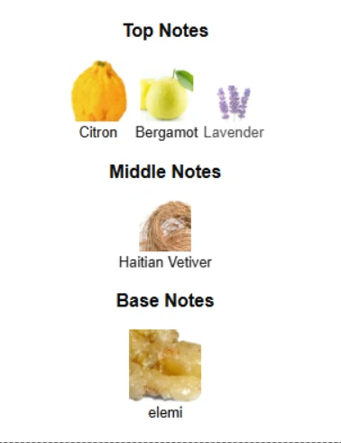 - Top Notes: Bergamot, Lemon, Mandarin, Ginger