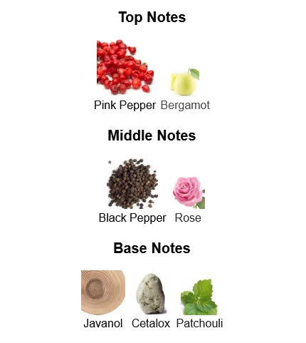 • Base Notes: Sandalwood, Musk, Amber, Vanilla