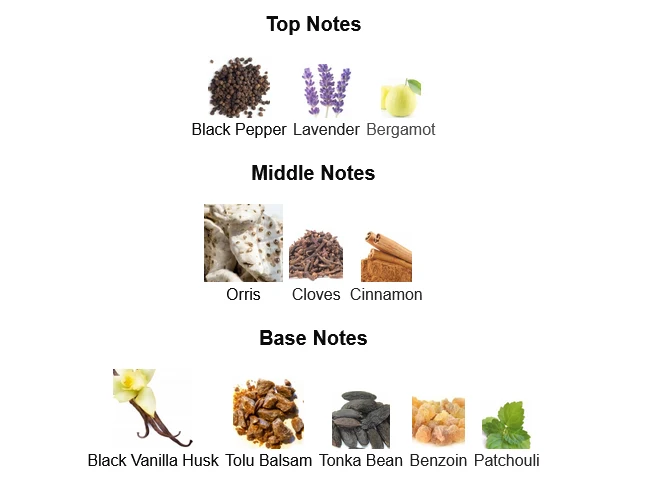 • Base Notes: Cedarwood, Sandalwood, Amber, Guaiac Wood