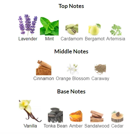 - Base Notes: Vanilla, Amber, Tonka Bean, Cedarwood