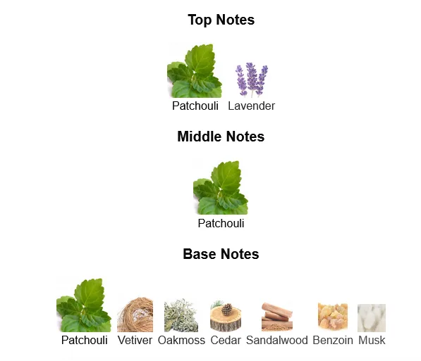 - Middle (Heart) Notes: Patchouli, Vetiver, Spices