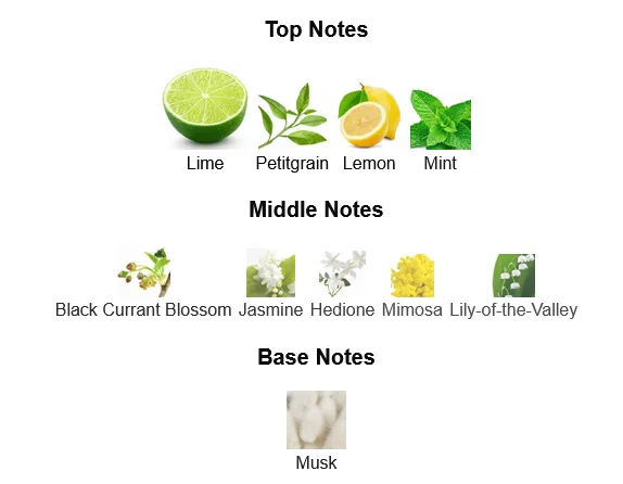 - Top Notes: Lime, Mint, Blackcurrant