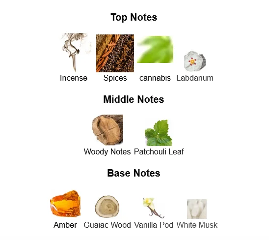 - Base Notes: Amber, Musk, Spices, Earthy Notes
