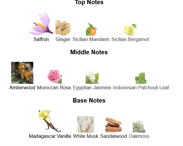 • Base Notes: Vanilla, Amber, Musk, Woody Notes