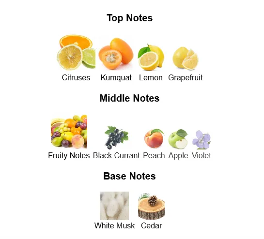 - Top Notes: Black Currant, Raspberry, Lemon