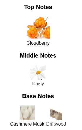 - Middle (Heart) Notes: Daisy Tree Petals, Cashmere Musk, Vanillic Notes