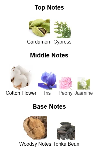 - Top Notes: Airy Accord, Notes of Wool or Cotton, Fresh Accords