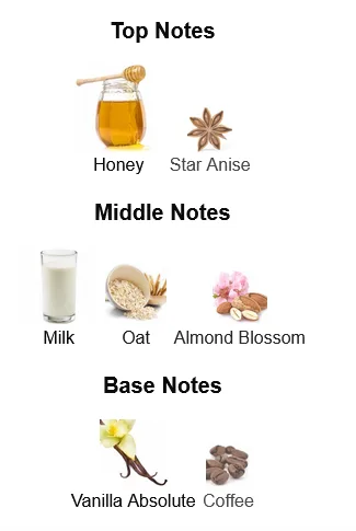 - Base Notes: Vanilla, Musk, Light Woody Accords