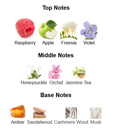 • Middle (Heart) Notes: Floral accords (such as jasmine or orchid), powdery notes