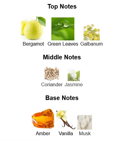 - Base Notes: Amber, Vanilla, Oud, Patchouli, Musk