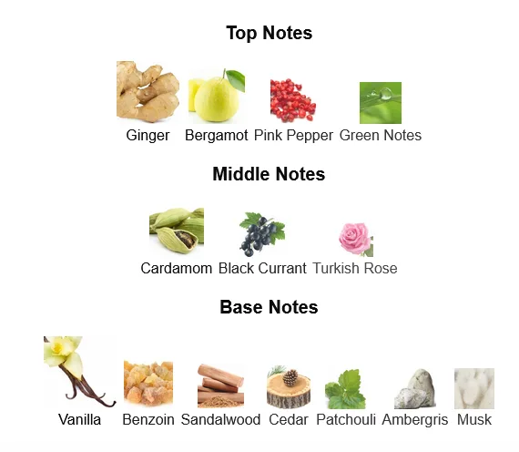 - Middle (Heart) Notes: Cinnamon, Ginger, Gardenia, Jasmine