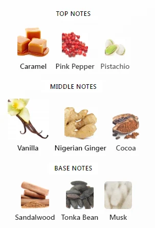 - Base Notes: Warm Woods, Amber, Musk