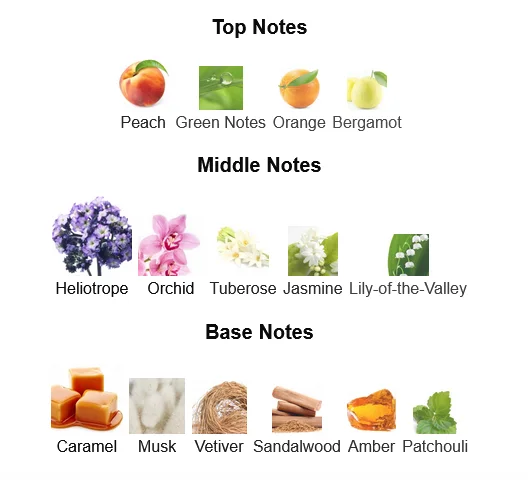 - Base Notes: Vanilla, Musk, Sandalwood, Amber