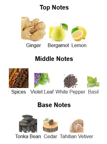 - Base Notes: Cedarwood, Vetiver, Amber, Tonka Bean